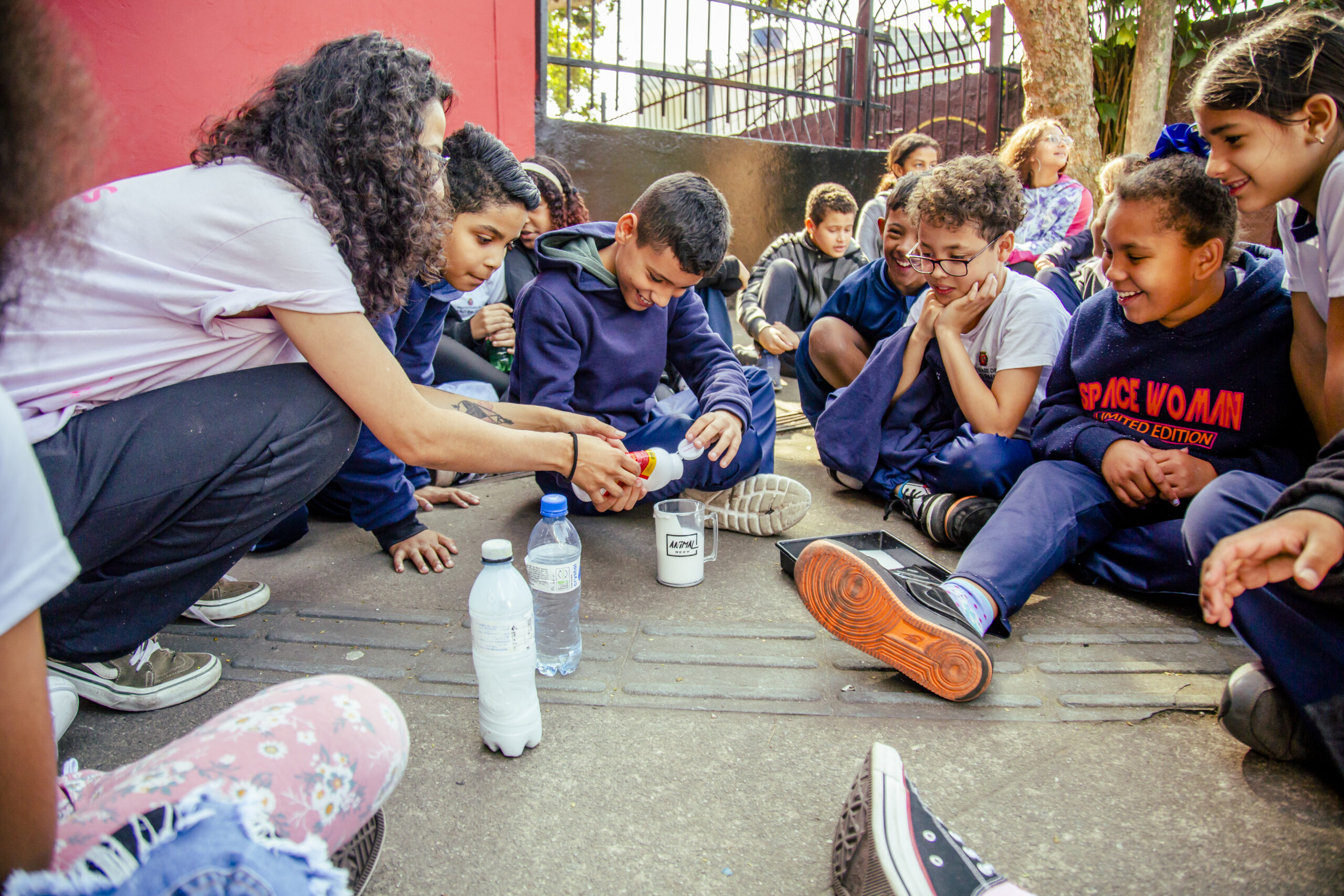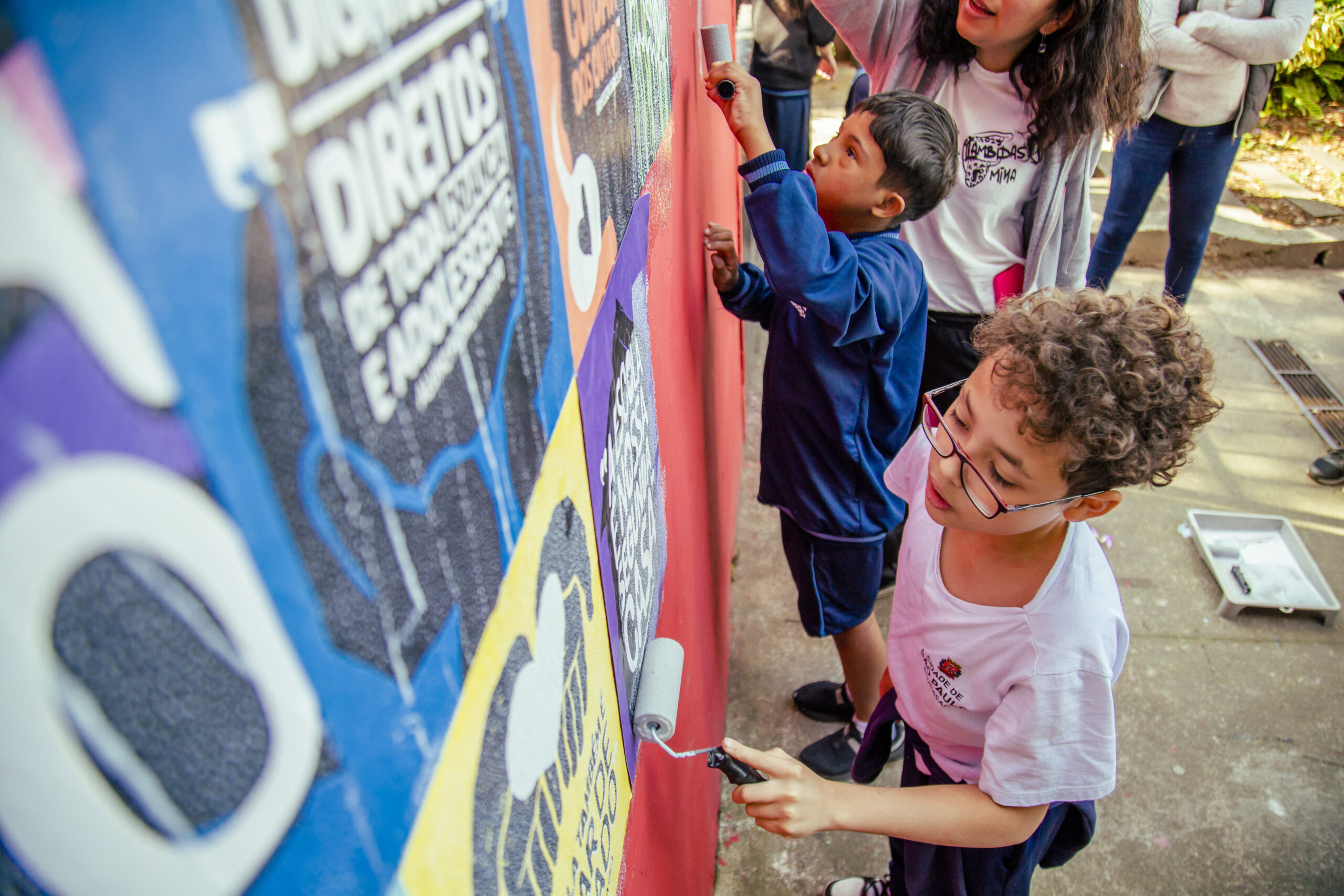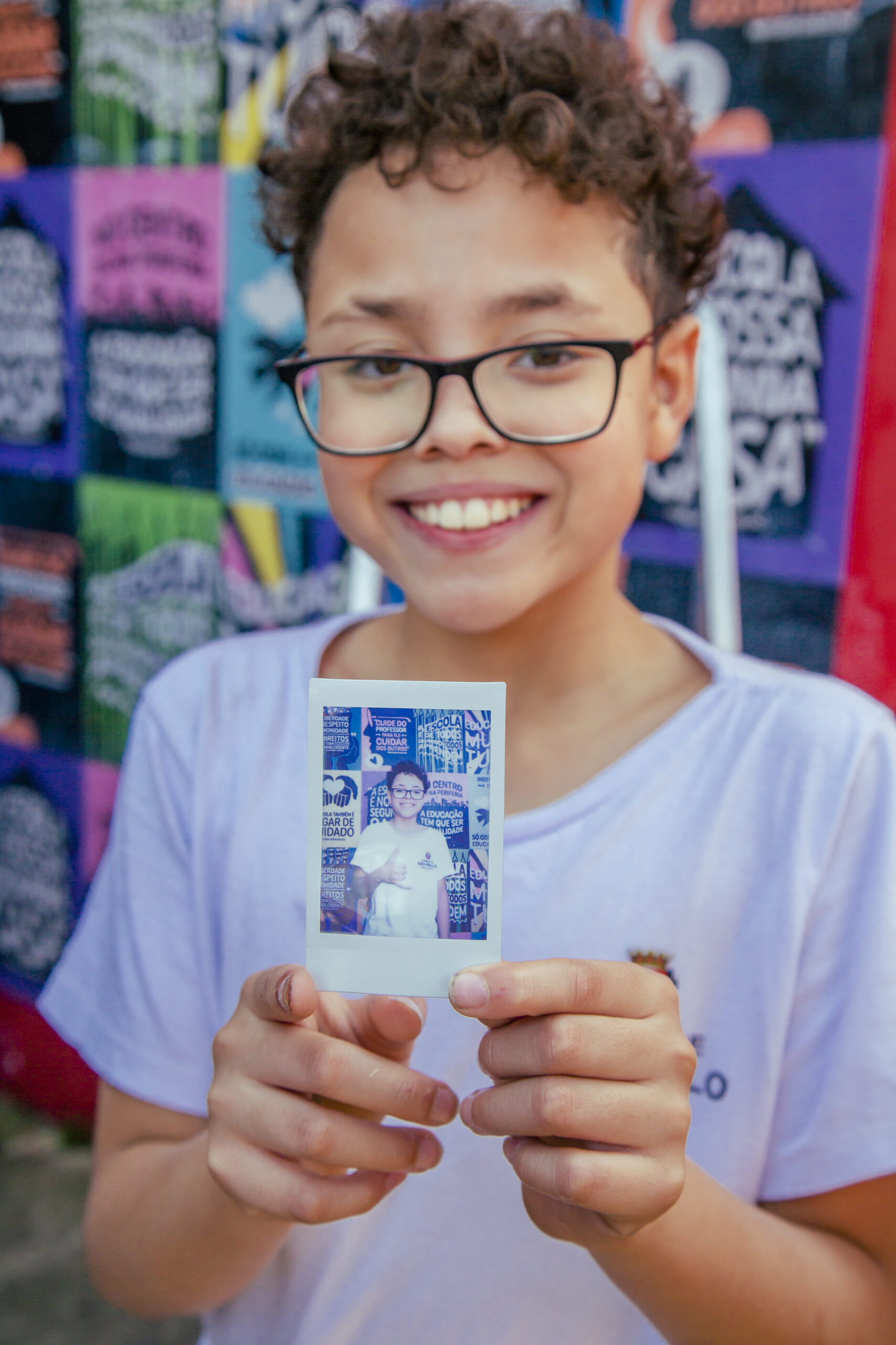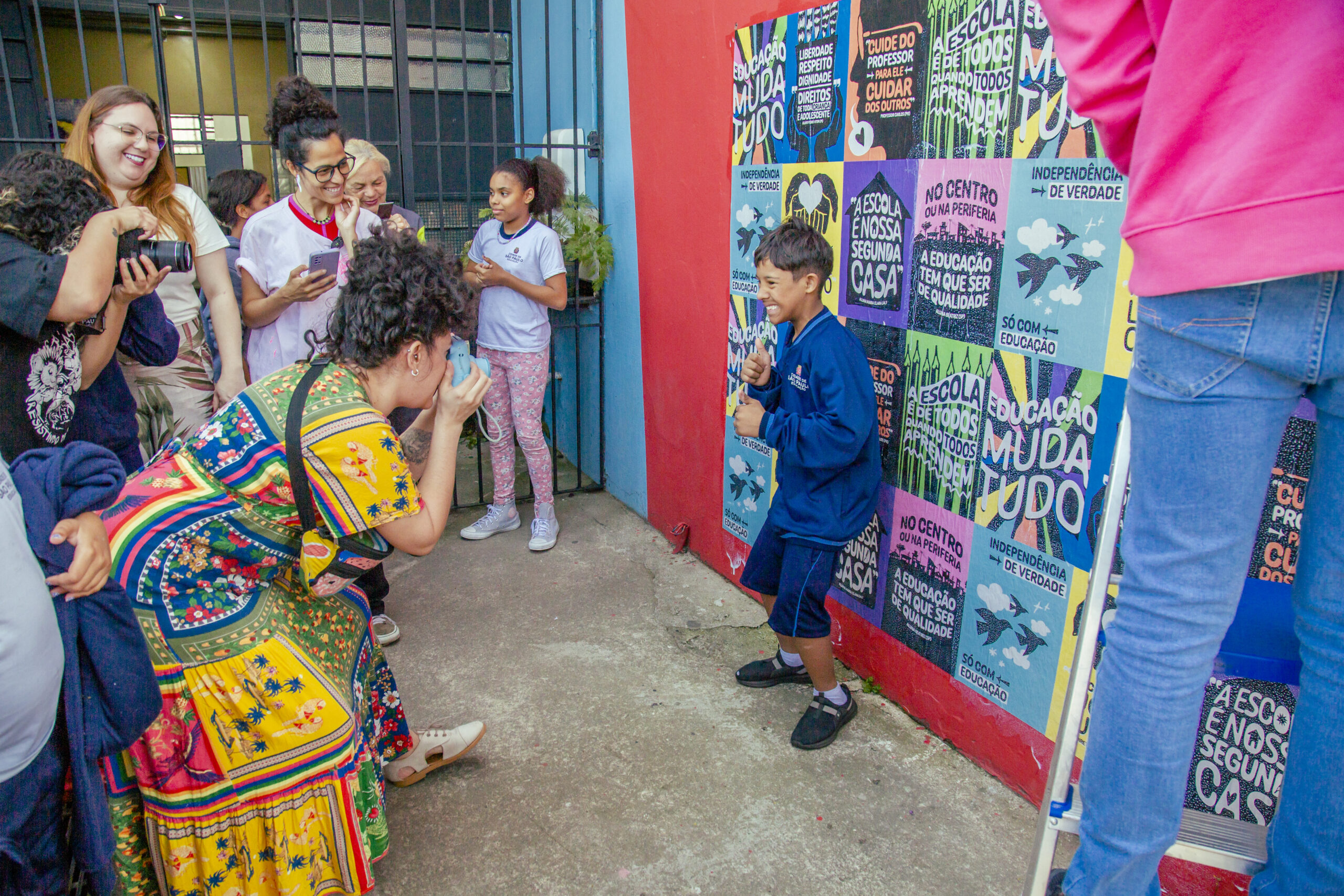 Recolhemos seus pensamentos e os transformamos em arte, com o apoio do artista e educador Douglas Gonçalves. Em uma ação de cocriação, estampamos alguns dos desejos para o Ensino Público em lambe-lambes e realizamos uma intervenção artística com a comunidade da EMEF Madre Joana Angélica de Jesus, em Guaianases, zona leste de São Paulo capital, com o coletivo LambiDasMina e apoio da rede Conectando Saberes. Ali sentimos que fomos presenteados de muitas formas: com o brilho no olhar de cada criança; com a acolhida e energia de toda a comunidade escolar e com a experiência das profissionais que ali trabalham. Baterias recarregadas para reinvidicar políticas públicas que transformem a Educação!